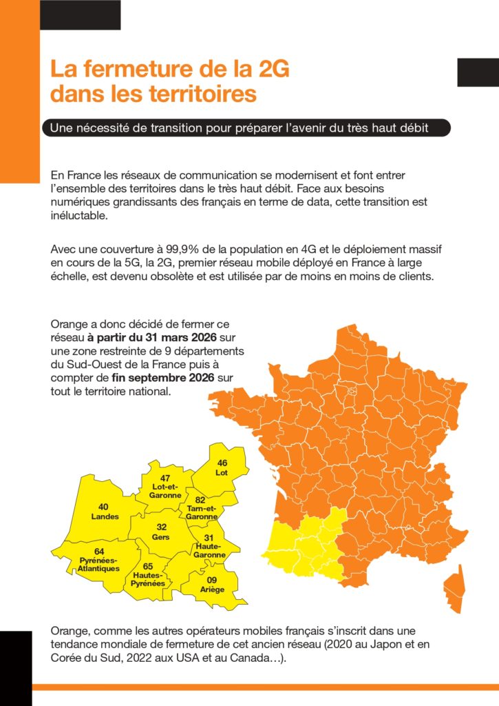 Fermeture du réseau 2G dans le Lot Le réseau 2G va être fermé en 2026. Présentation de cette fermeture annoncée, par Orange :